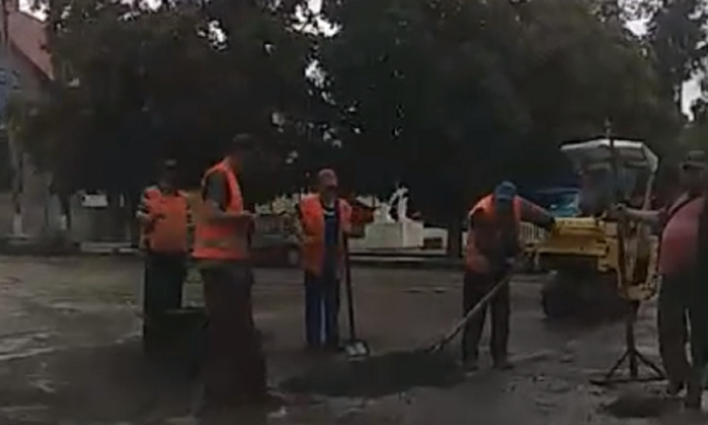 Drumarii din orașul Otaci, raionul Ocnița, au fost surprinși cum repară drumurile imediat după ploaie.