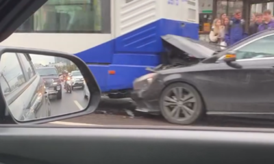 Nu a văzut troleibuzul? Momentul în care șoferul unui Mercedes a intrat în plin într-un troleibuz de pe ruta numărul 25, care staționa regulamentar la stație,...