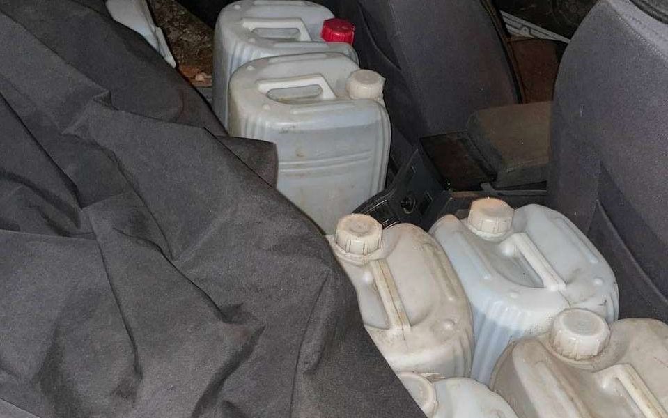 Peste o tonă de alcool etilic fără acte de proveniență a fost depistat de poliție în două automobile.