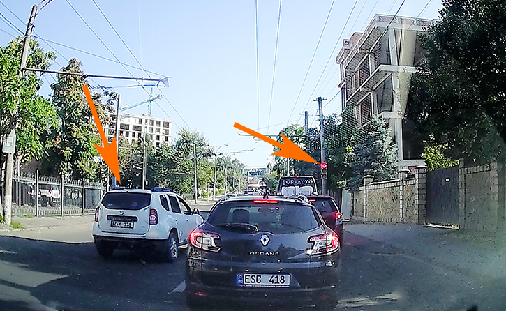 În urma tamponării, cele două mașini au rămas blocate în mijlocul intersecției. Nu sunt victime