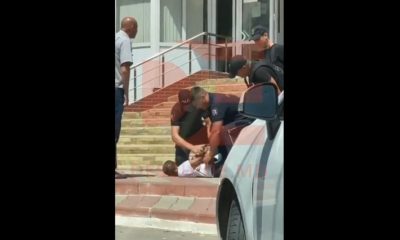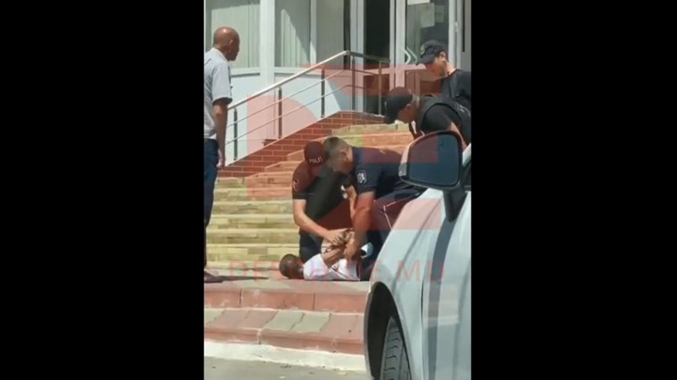 Momentul în care a un bărbat este reținut de oamenii legii, în fața un centru medical din sectorul Botanica,a fost surprins de un martor ocular.