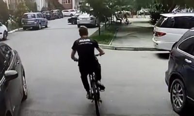 Hoț cu ghinion, a fost surprins de camerele de supraveghere în momentul când iese din scara unui bloc cu o bicicletă furată.