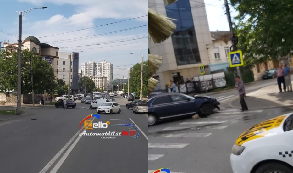 Nu au putut împărți drumul. Doi automobiliști s-au tamponat violent într-o intersecție din sectorul Centru al capitalei.