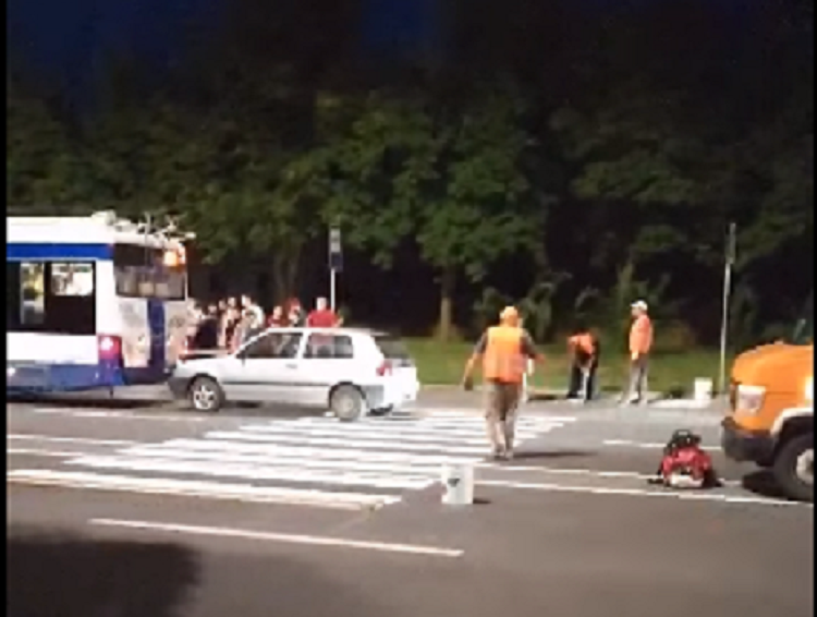 Accident pe loc drept pe o stradă din capitală. Un automobilist a tamponat un troleibuz oprit la stația de așteptare.