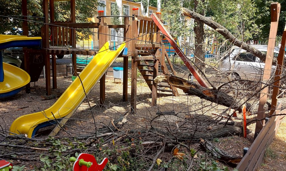 Caz revoltător în Chișinău. Un copac mare și uscat ar fi căzut peste un teren de joacă amplasat vizavi de o grădiniță din sectorul Rîșcani al...
