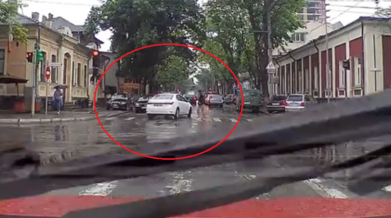 Ploaia abundentă, graba și neatenția au fost cât pe ce să devină cauzele unui accident pe o stradă din capitală.