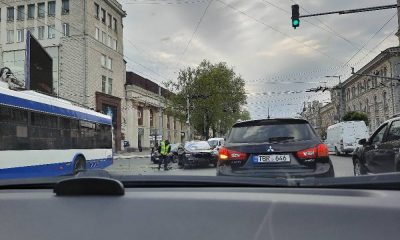 Accident matinal în inima capitalei. Două autoturisme s-au tamponat într-o intersecție, iar în rezultat s-au format ambuteiaje infernale.