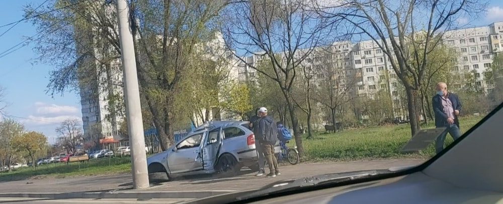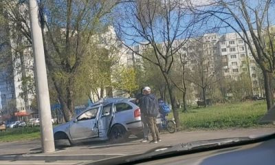 Accident violent pe strada Albișoara din capitală. Un șofer s-a izbit cu mașina într-un pilon de la marginea drumului.