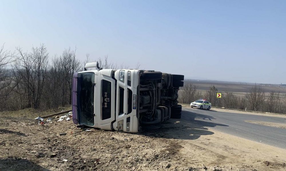 Un camion încărcat cu fier vechi s-a răsturnat pe șosea în timpul deplasării. Totul s-a întâmplat pe traseul Sculeni-Ungheni.