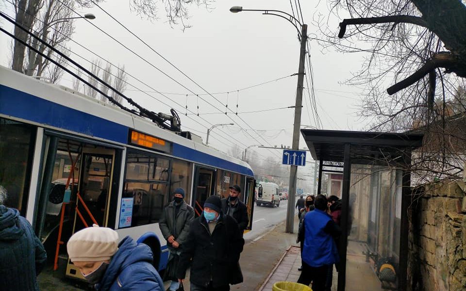 Accident matinal, în centrul capitalei. O șoferiță s-a izbit într-un troleibuz, oprit în stație.