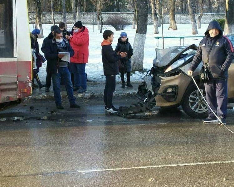 Accident violent, pe o stradă din Bălți. Șoferul nei mașini s-a izbit în partea din spate a unui troleibuz de linie.