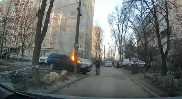 Incendiu pe o stradă din sectorul Centru al capitalei. O mașină parcată în curtea unui bloc locativ a luat foc.