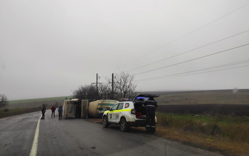 Un mixer cu beton s-a răsturnat în această dimineață în apropiere de satul Mărăsești.