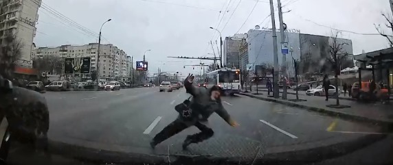 A scăpat întreg, după ce a căzut în fața unei mașini în plin trafic.