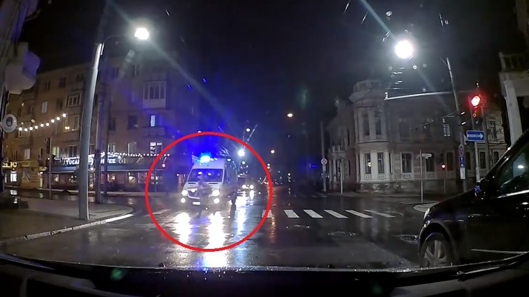 O femeie a fost la un pas de a fi lovită de o ambulanță în timp ce traversa strada în centrul Capitalei.