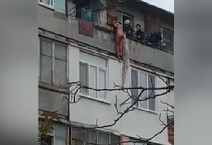 Un bărbat gol intenționa să sară de pe balconul etajului al cinci al unui bloc locativ din capitală.