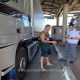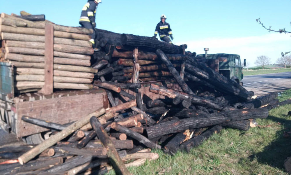 Momente de panică pentru un șofer de camion. Lemnele pe care le transporta au luat foc chiar în remorcă.
