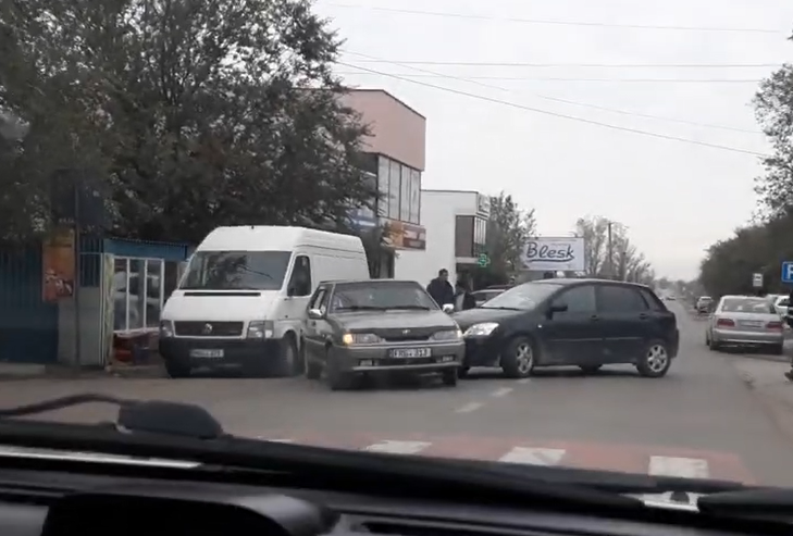 Dimineață cu ghinion pentru un șofer din orășelul Durlești. Mai întâi a nimerit cu roata într-o gură de canalizare, apoi a fost proiectat într-un pilon electric.