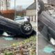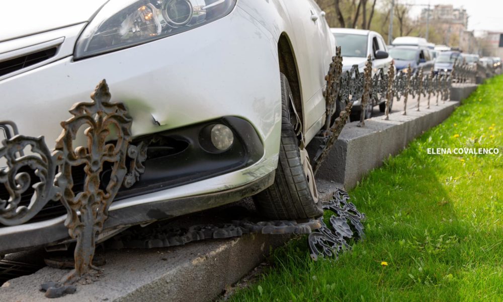Accident cu semne de întrebare, în centrul capitalei. Un automobil a ajuns, în circumstanțe încă neclare direct în gardul de pe aleea Grigore Vieru.