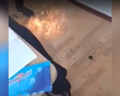 Câțiva elevi s-au filmat în timp ce dau foc la dezinfectant, chiar pe podeaua din clasă, după care încearcă să stingă flăcările cu picioarele.