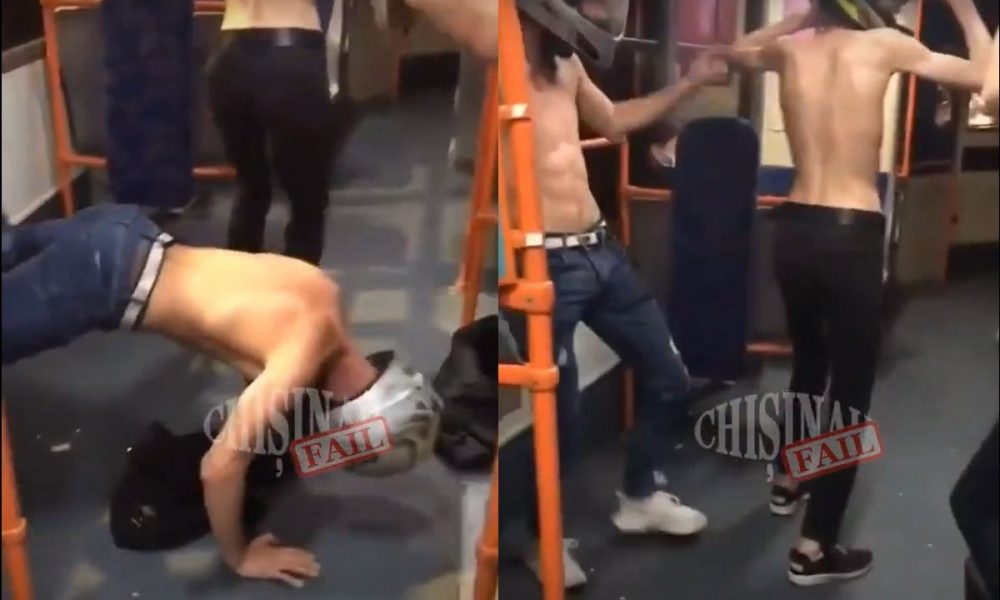 No comment. Trei adolescenți dansează goi până la jumătate într-un troleibuz.