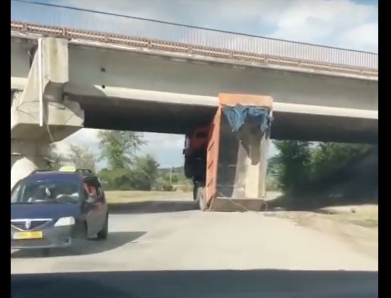 Incident ieșit din comun, în orășelul Sângera. Un camion nu a încăput sub un pod și s-a pomenit cu roțile din față în aer. Totul a...