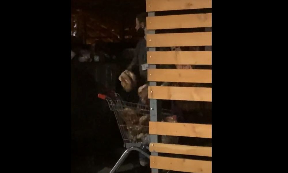 Un angajat al unui supermarket din capitală, filmat cum aruncă la tomberon zeci de pâini, cel mai probabil, cu termenul de valabilitate expirat.