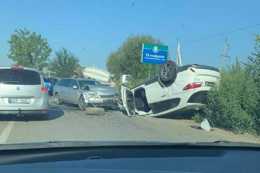 Accident matinal la intrarea în orașul Strășeni. O mașină a zburat câțiva metri înainte după ce un alt vehicul a tamponat-o din spate.