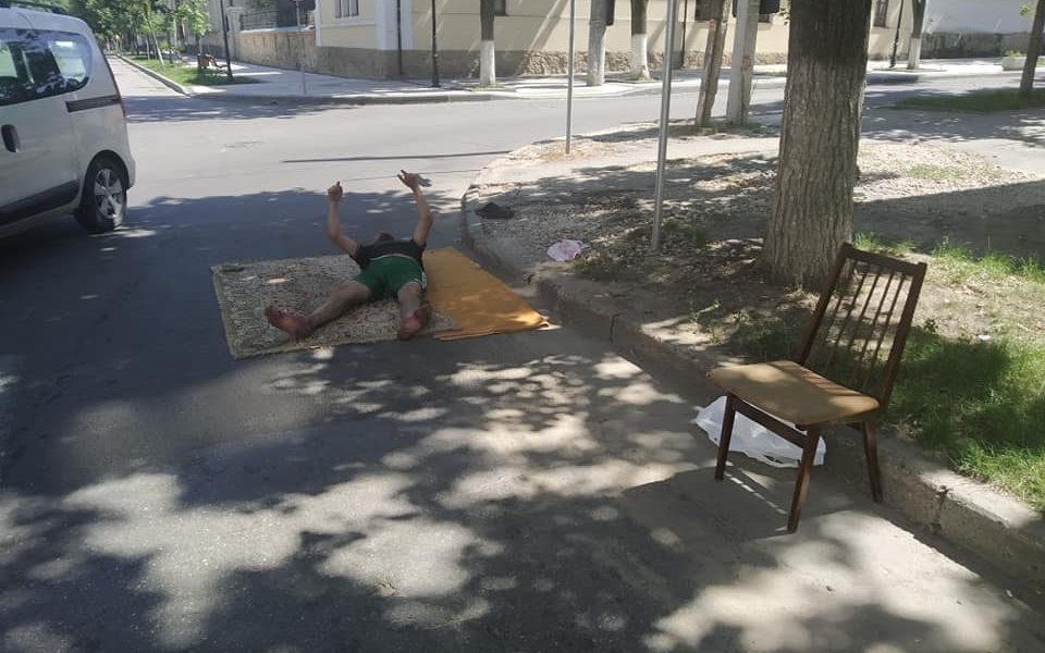 Atunci când strada îți este casă. Un bărbat fără loc permanent de trai a fost fotografiat în timp ce stă culcat pe o pătură, chiar pe...