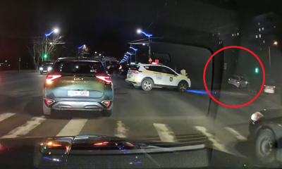 Un șofer a fost surprins mai întâi cum trece la culoarea roșie a semaforului, iar mai târziu, fiind implicat într-un accident rutier.