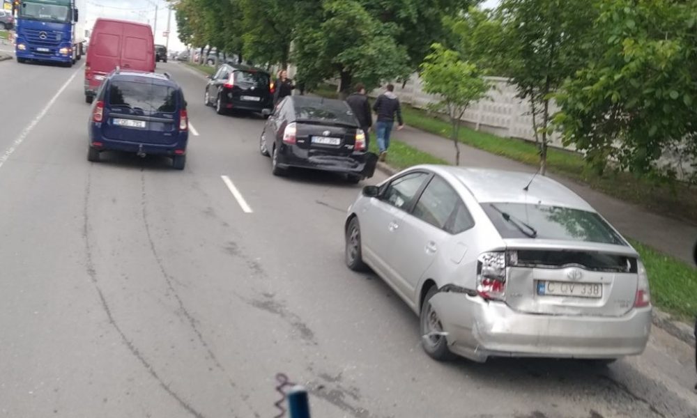 Accident în lanț, pe strada Petricani din capitală. Trei mașini au grav grav avariate.
