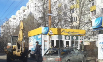Un excavator a accidentat o mașină, în cartierul Poșta Veche din capitală.