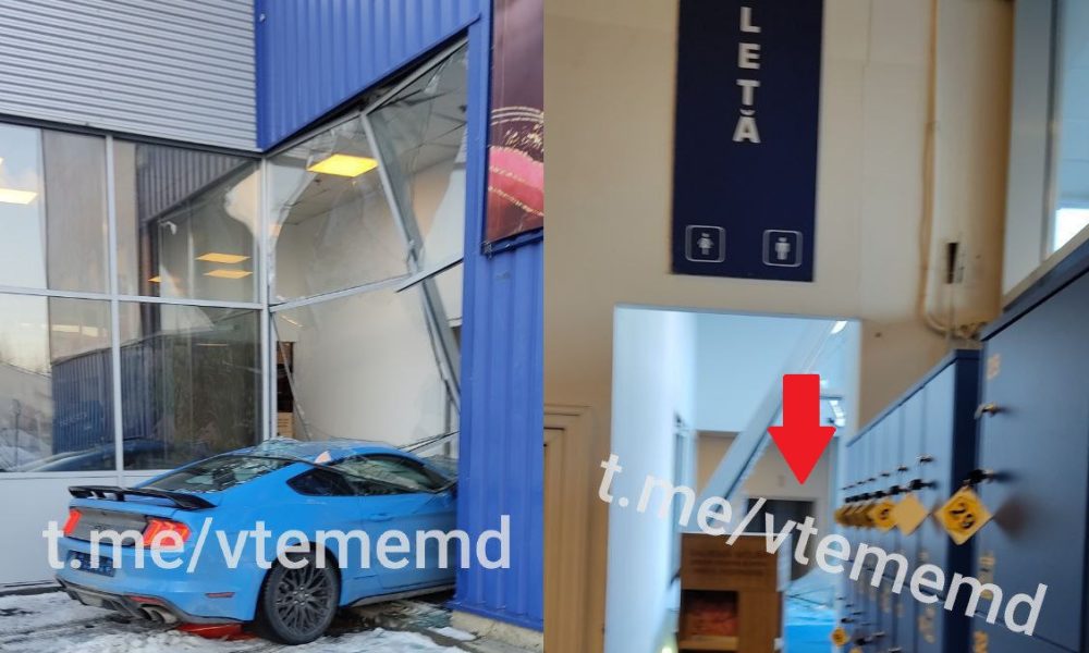 Accident cu multe semne de întrebare. Un șofer aflat la volanul unui bolid de curse a intrat cu tot cu mașina luxoasă într-un hypermarket din capitală.