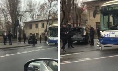 Momente de panică pentru pasagerii unui troleibuz din capitală. Vehiculul cu care se deplasau s-a tamponat în plin cu un automobil.