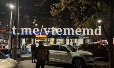 Geamurile unui troleibuz au fost făcute țăndări, după ce unitatea de transport a fost implicată într-un accident rutier.