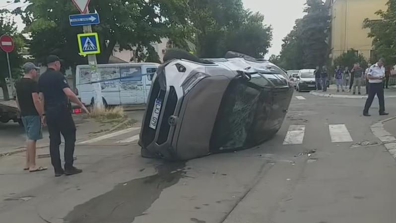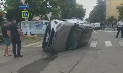 Accident violent, în capitală. O șoferiță a ajuns la spital, după ce mașina pe care o conducea s-a răsturnat.