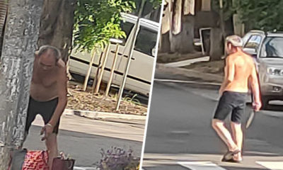 Un bărbat a fost surprins zilele acestea cum se plimbă cu un cuțit în mână în centrul Capitalei.
