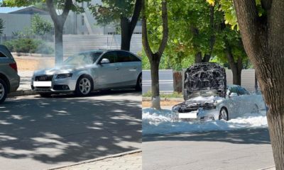 O mașină de model Audi a luat foc în centrul municipiului Cahul, pe bulevardul Victoriei.