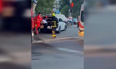 Accident violent, în capitală. Două mașini s-au tamponat în plin, ambele fiind proiectate pe trotuar.