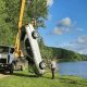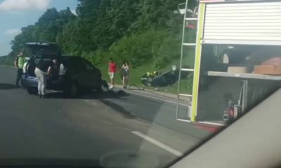 Un automobil a ajuns într-un canal de scurgere după ce a fost tamponat din spate de un alt autoturism.