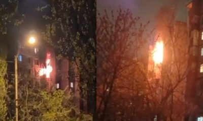 Imagini de te iau groaza, surprinse pe o stradă din capitală. Un bloc locativ a fost cuprins de flăcări.