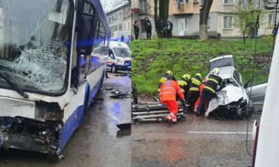 Unul dintre cei doi polițiști de patrulare, care se aflau în automobilul Toyota, care s-a izbnit într-un troleibuz de pe ruta Nr.5, la data de 2...