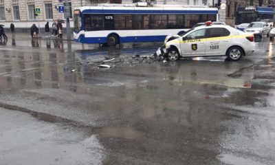 Accident violent în capitală cu implicarea unei mașini a poliției și o ambulanță.