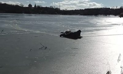 Două persoane au fost scoase de salvatori după ce s-au prăbușit sub gheața subțire a unui bazin acvatic.