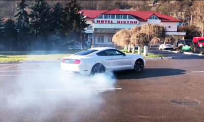 Un șofer s-a filmat cum face drifturi la Soroca, în fața Hotelului Nistru, cu un Mustang.