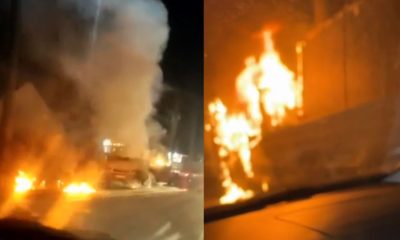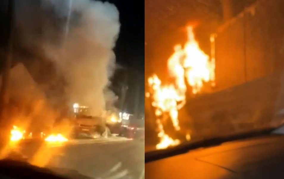Clipe de coșmar pentru un șofer din capitală. Vehiculul său a luat foc și arde ca o torță. Se întâmplă acum pe strada Petricani. Pompierii încearcă...