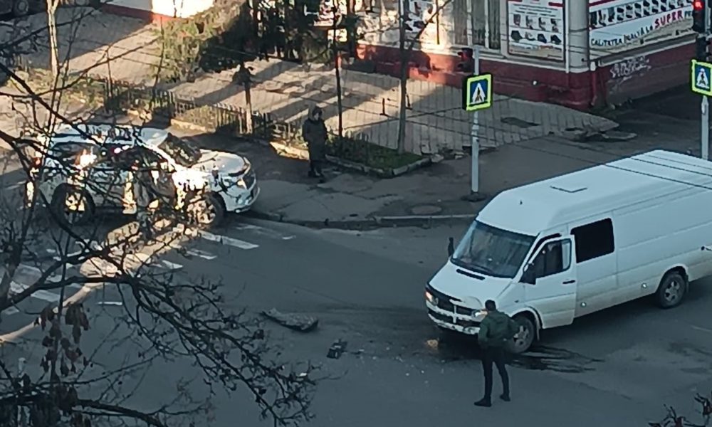 Accident matinal în capitală. Un microbuz marfar s-a tamponat în plin cu o mașină, într-o intersecție din sectorul Buiucani.