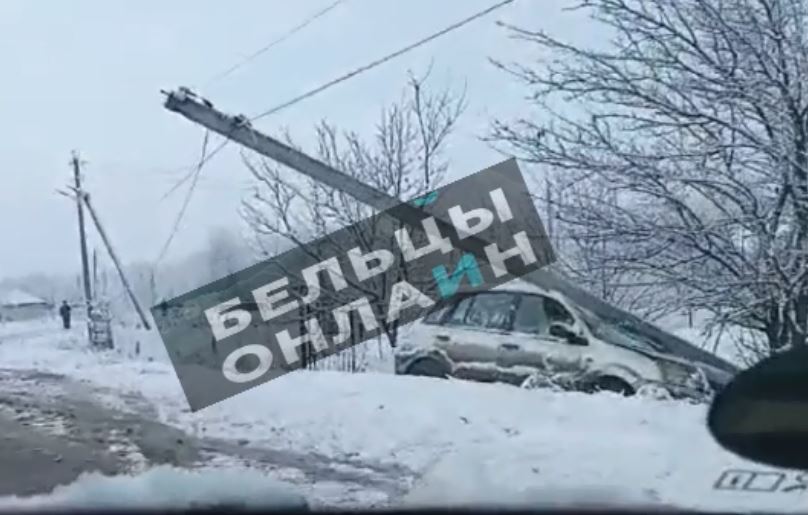 Clipe de panică pentru un șofer din raionul Fălești. Acesta ar fi derapat cu mașina de pe traseu, izbindu-se direct într-un stâlp.