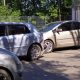 Momentul în care un șofer, ajutat de o femeie, se izbește într-o altă mașină, în timp ce parchează.