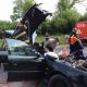 O Dacia Logan a proiectat un Range Rover într-un șanț pe un traseu din raionul Ialoveni.